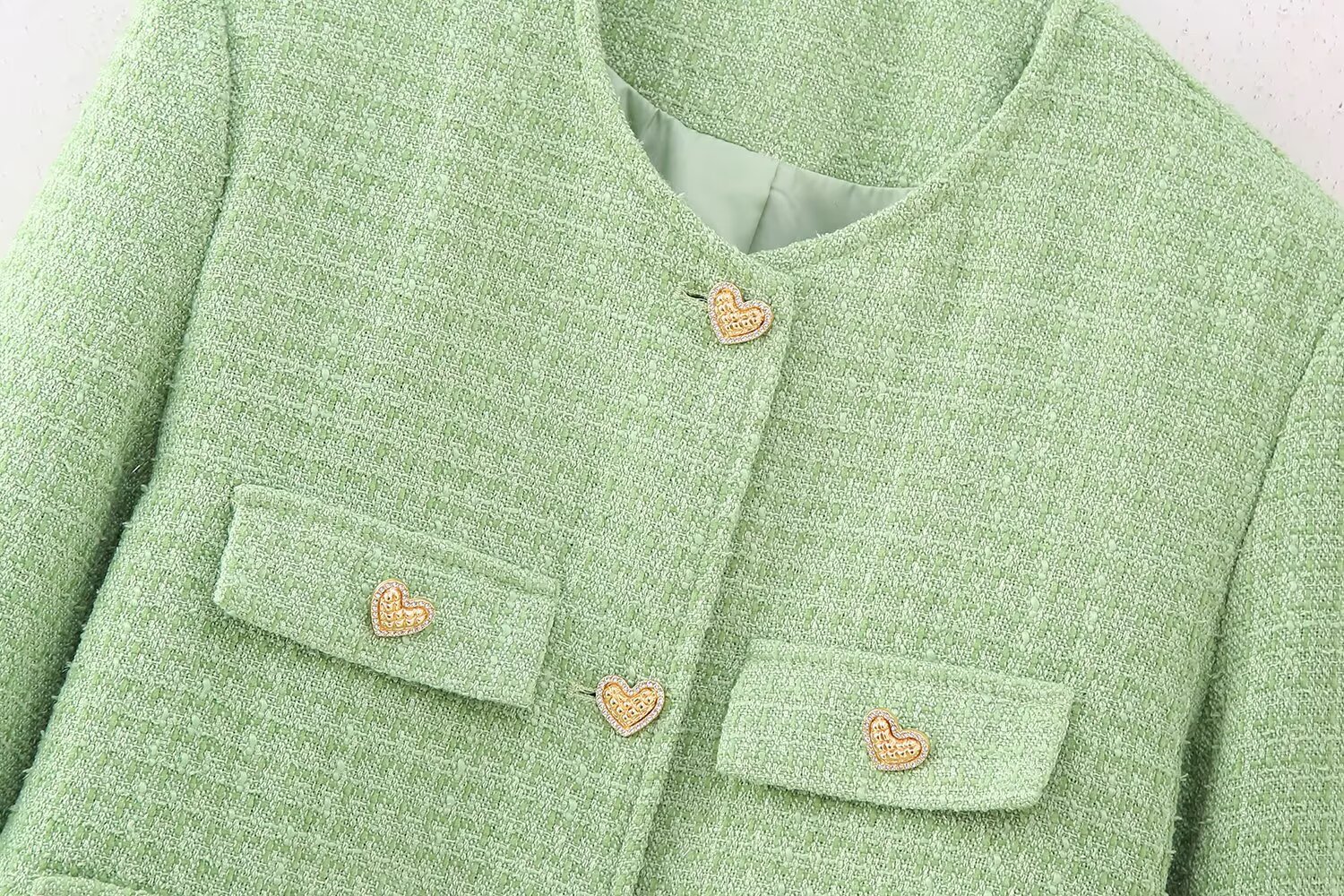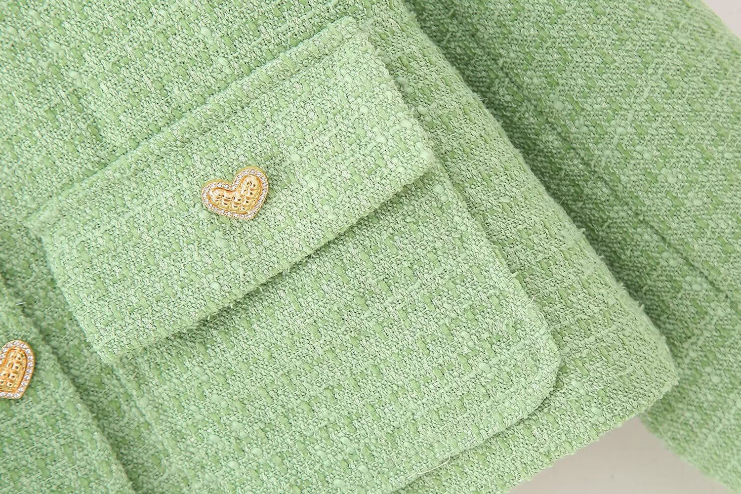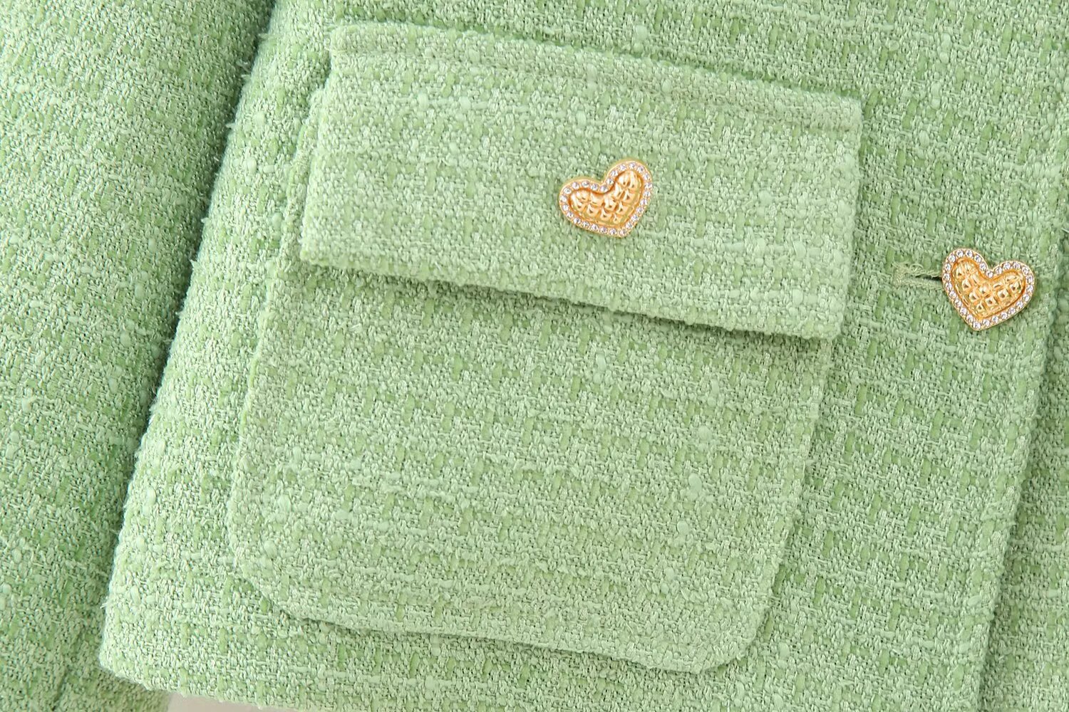 New European And American-style Chic Wool Coat With Heart-shaped Button Detailing Wool Mini Skirt